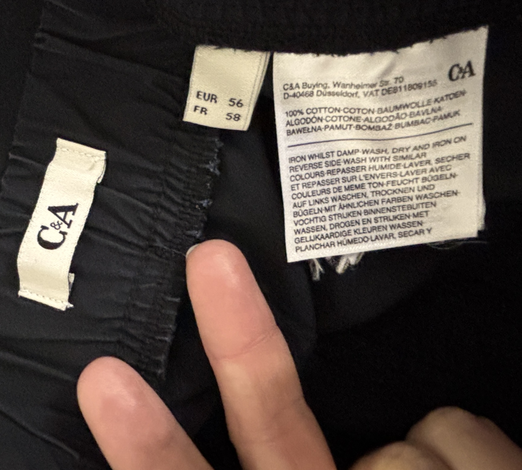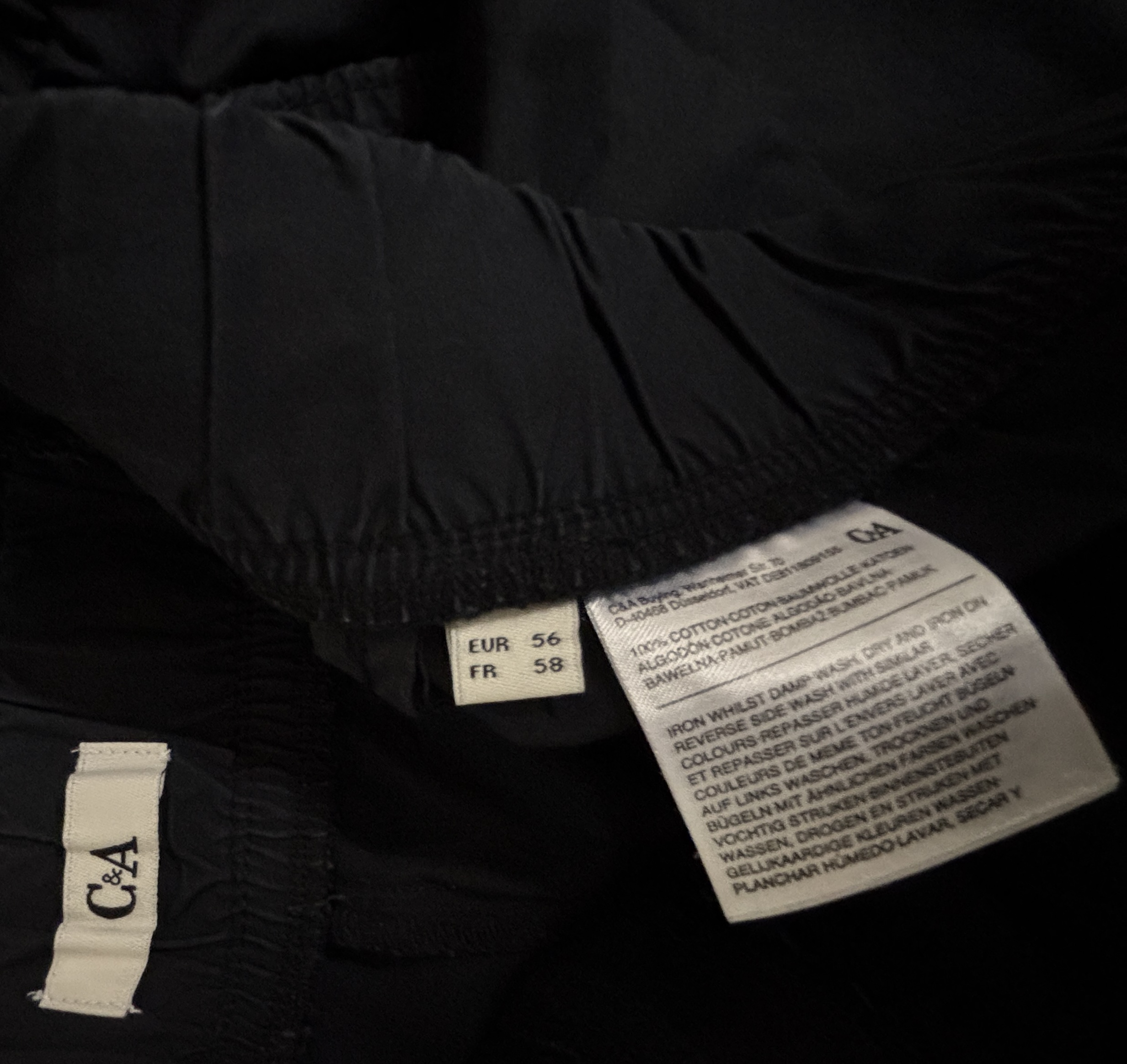Verkauft wird eine C&A lange Hose schwarz gemäss Bildern. Grösse: 2x 56. 1x 58.