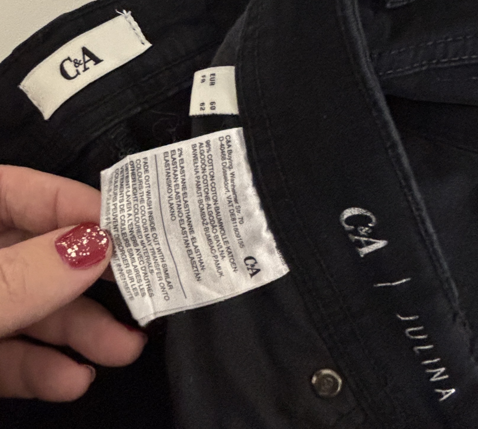 Verkauft wird eine C&A schwarze Jeans Hose lang gemäss Bildern. Grösse: 60.