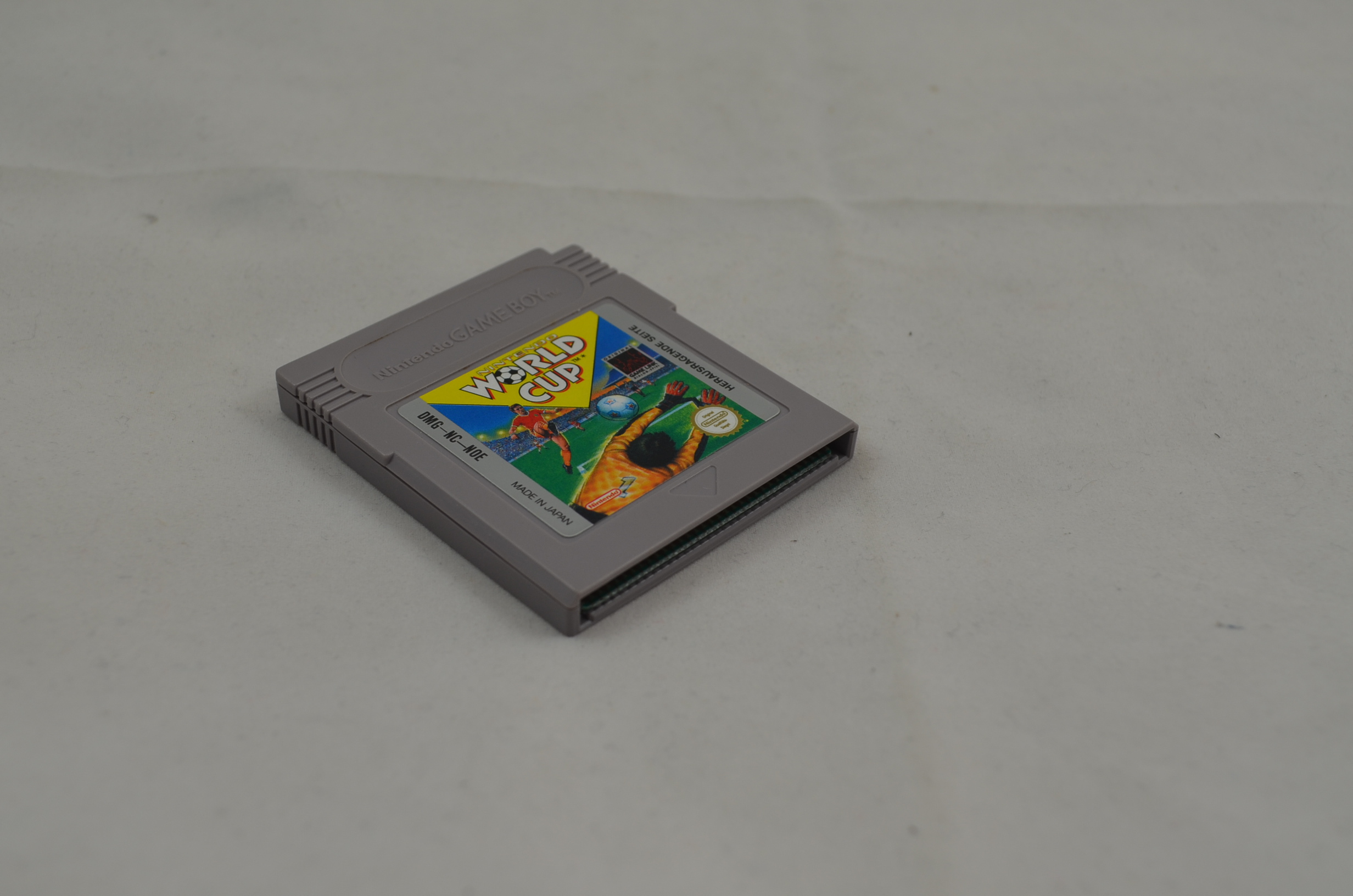 Verkauft wird das Spiel Nintendo World Cup für den Game Boy. Bild nicht zwingend ein Originalbild. Modul ist in jedem Fall in spielbarem Zustand. Label grundsätzlich OK, höchstens kleine Ablösungen des Labels oder minimal fehlende Teile des Labels sind toleriert. Die meisten Module sind jedoch einwandfrei.