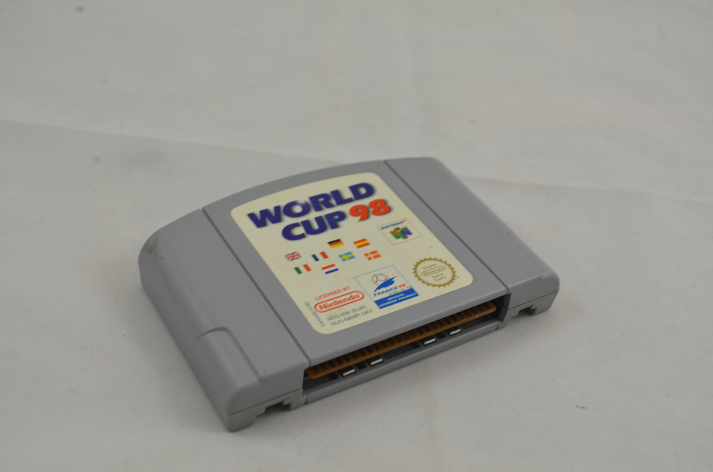 Verkauft wird das Spiel World Cup 98 für den Nintendo 64. Bild nicht zwingend ein Originalbild. Modul ist in jedem Fall in spielbarem Zustand. Label grundsätzlich OK, höchstens kleine Ablösungen des Labels oder minimal fehlende Teile des Labels sind toleriert. Die meisten Module sind jedoch einwandfrei.