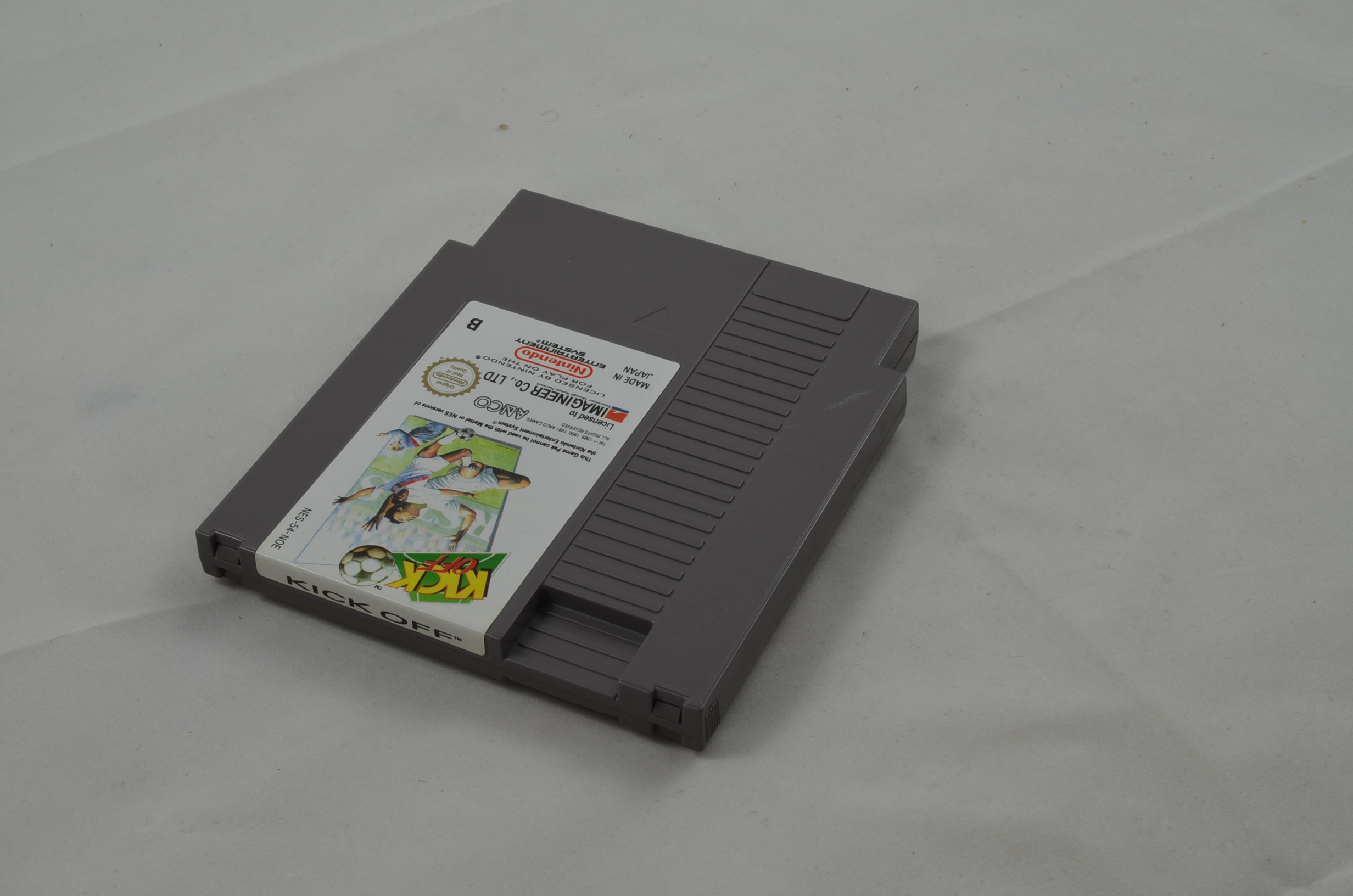 Verkauft wird das Spiel Kick Off für den Nintendo NES. Bild nicht zwingend ein Originalbild. Modul ist in jedem Fall in spielbarem Zustand. Label grundsätzlich OK, höchstens kleine Ablösungen des Labels oder minimal fehlende Teile des Labels sind toleriert. Die meisten Module sind jedoch einwandfrei.
