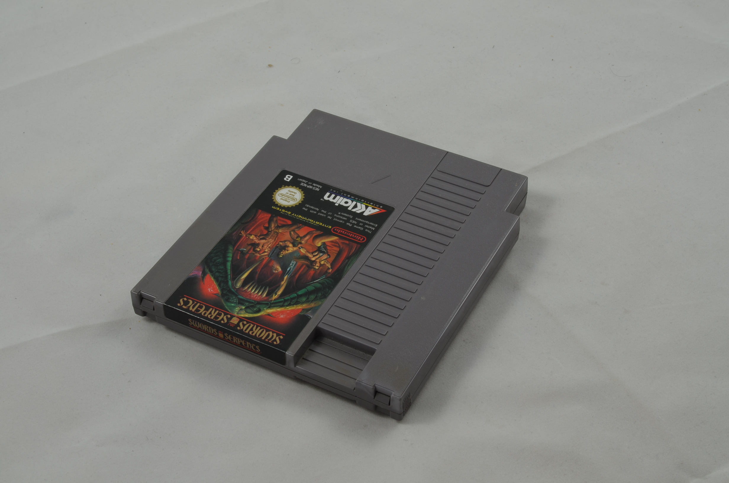 Verkauft wird das Spiel Swords and Serpents für den Nintendo NES. Bild nicht zwingend ein Originalbild. Modul ist in jedem Fall in spielbarem Zustand. Label grundsätzlich OK, höchstens kleine Ablösungen des Labels oder minimal fehlende Teile des Labels sind toleriert. Die meisten Module sind jedoch einwandfrei.