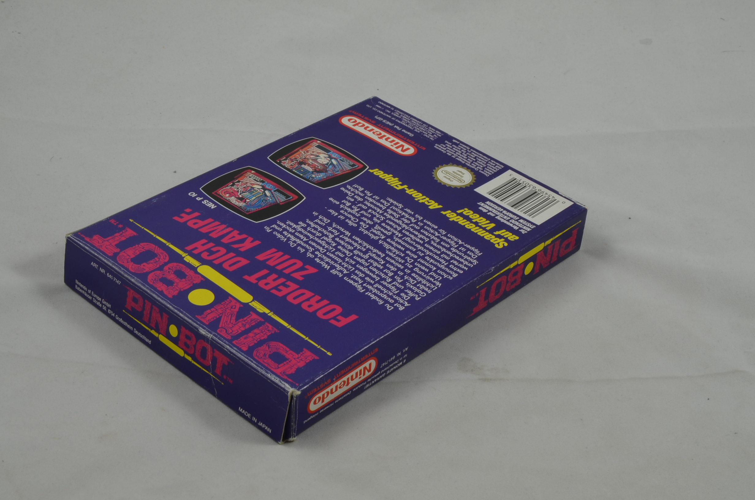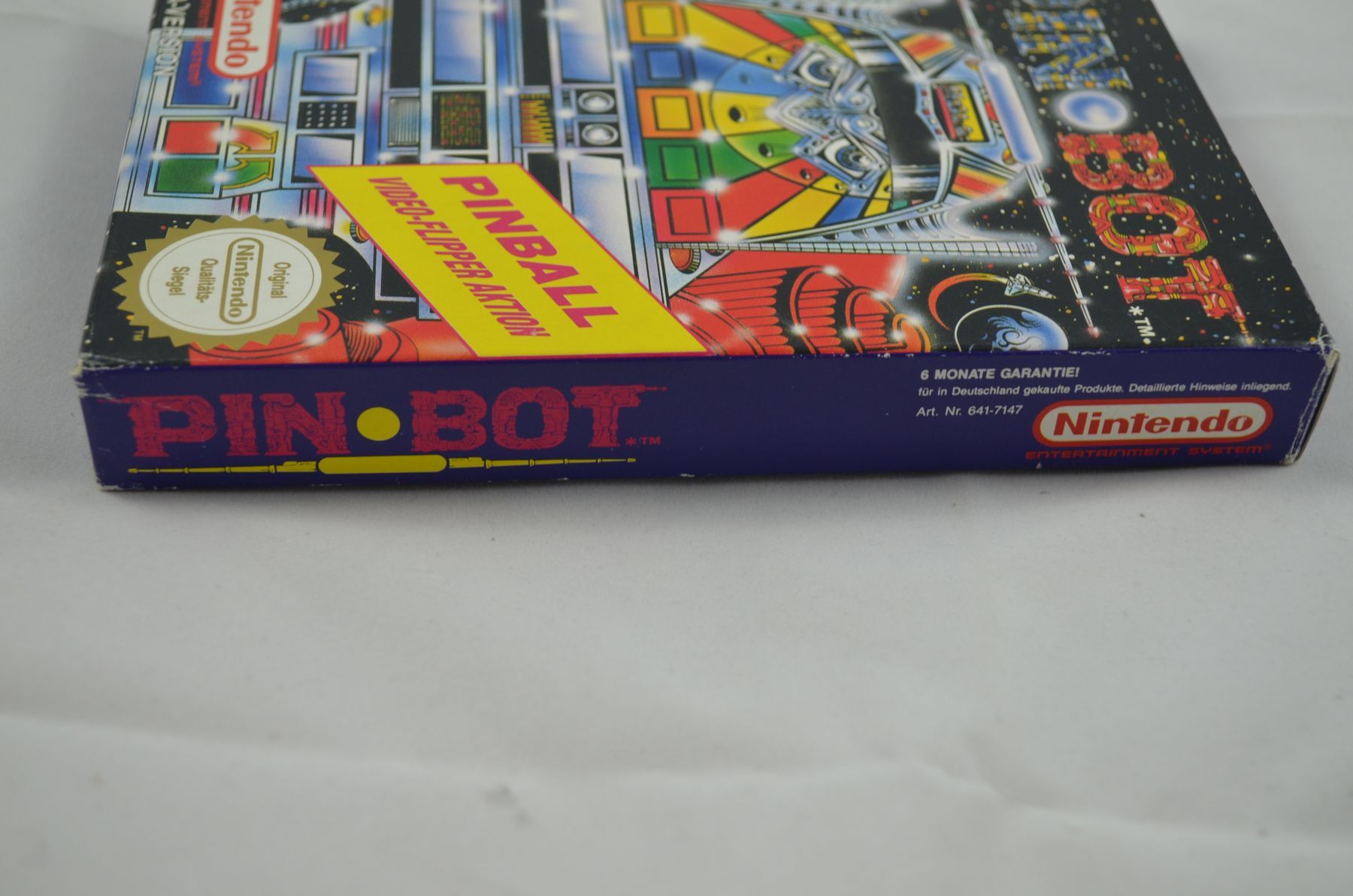 The NES conversion of Pin Bot reproduces the design and artwork of the pinball machine's playfield and backglass display, as well as its music and many of its sound effects. Additionally, the game plays the synthesized speech of Pin Bot, though gameplay is interrupted while its phrases are being played back. The speech, music and sound effects can each be toggled on and off through a pause menu, accessible via the second controller. (The first controller cannot pause the game since the Start and Select buttons are used to "nudge" the machine.) (Quelle: Wikipedia)