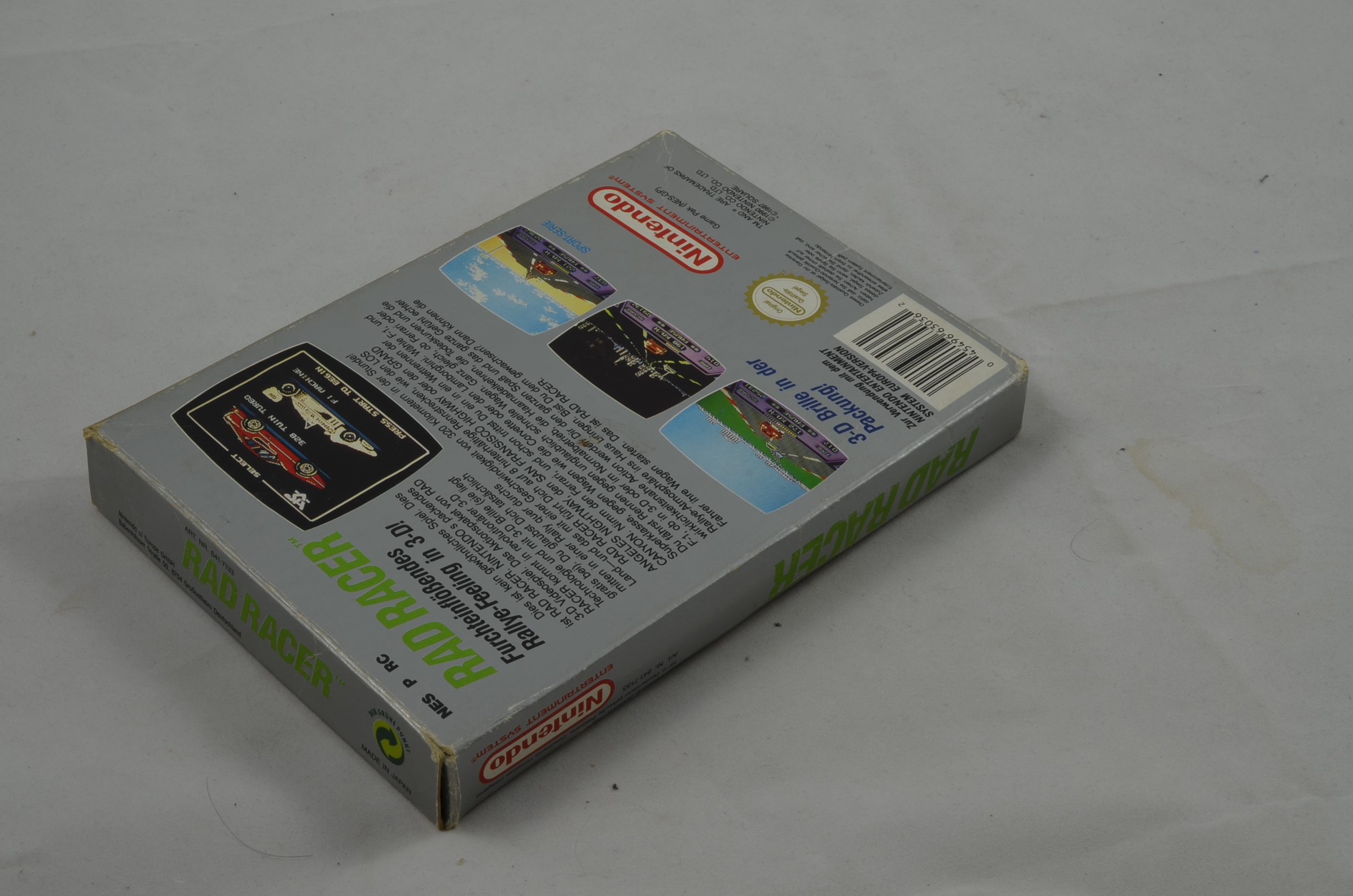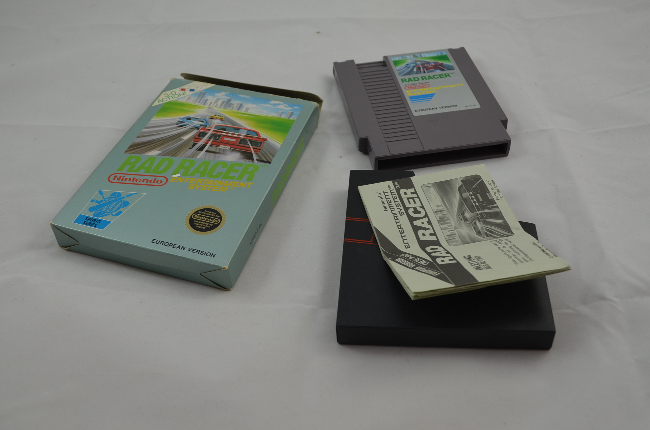 The idea of Rad Racer is to rally through a course and its checkpoints before the timer expires. The player's car crashes if it collides with a road sign or tree at any speed. Cars hit from behind slow down and cars hit from the side are jettisoned in that direction. Crashes take time and make it more difficult for the player to reach the check point. There are eight different levels of increasing skill. Even if time runs out, the vehicle can continue to coast for a while; if the vehicle reaches a checkpoint before running out of momentum, the game continues. If time runs out before the goal is reached, the game is over. Rad Racer players can activate a 3D mode during play by pressing the "Select" button and wearing 3D glasses. The game came packaged with 3D glasses which could be worn to give the player the illusion of three dimensions (Square had previously incorporated the usage of 3D glasses in 3-D WorldRunner).