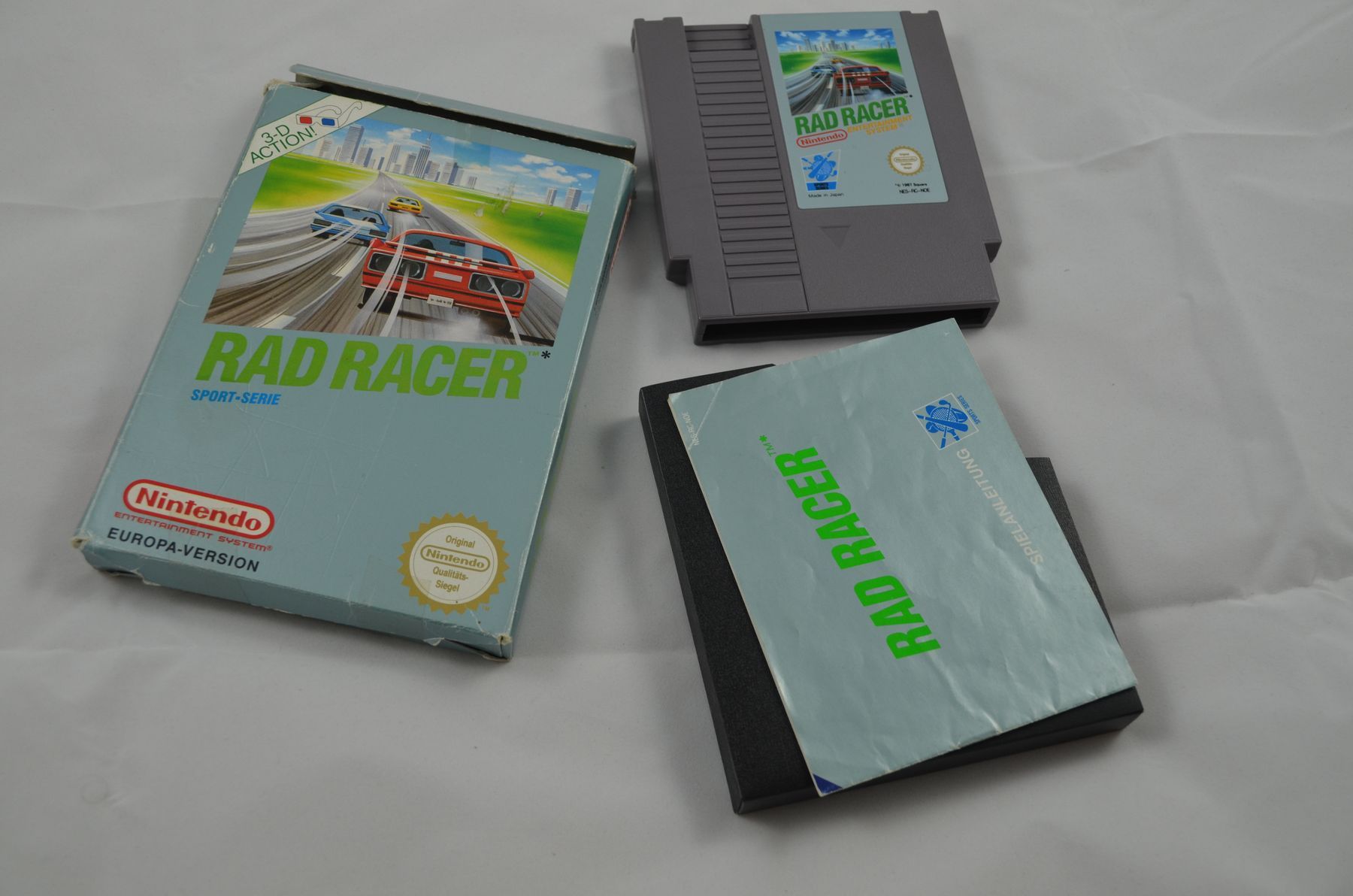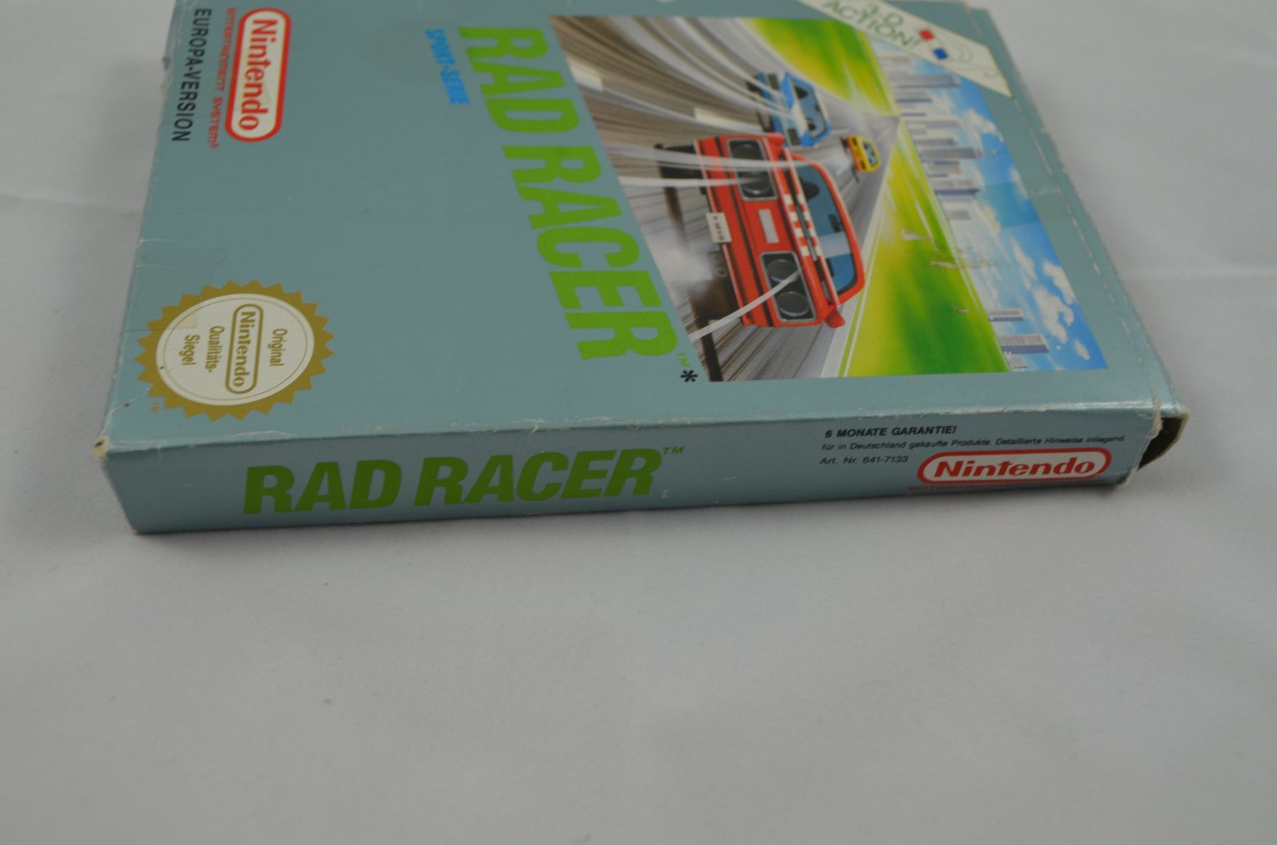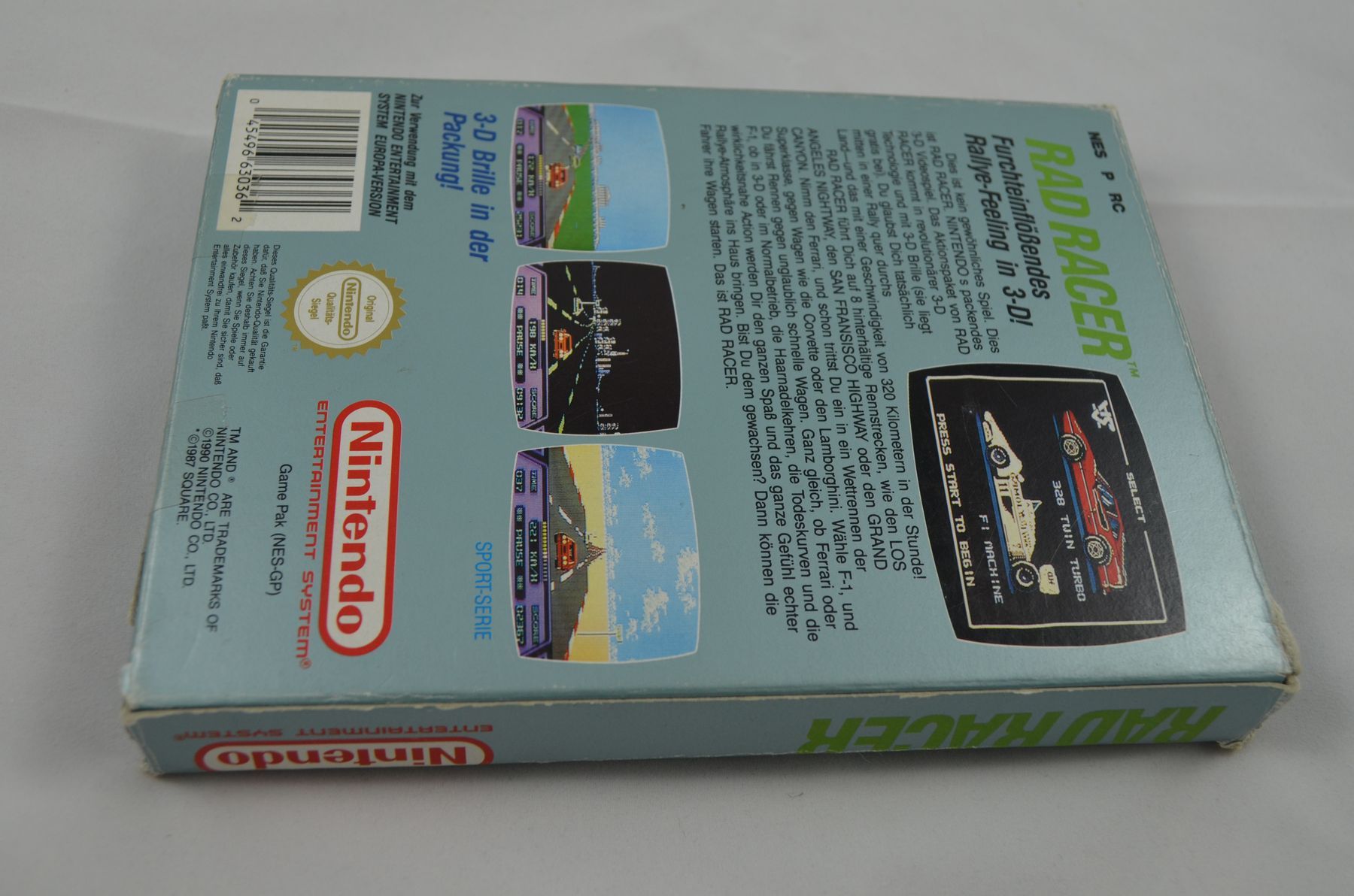 The idea of Rad Racer is to rally through a course and its checkpoints before the timer expires. The player's car crashes if it collides with a road sign or tree at any speed. Cars hit from behind slow down and cars hit from the side are jettisoned in that direction. Crashes take time and make it more difficult for the player to reach the check point. There are eight different levels of increasing skill. Even if time runs out, the vehicle can continue to coast for a while; if the vehicle reaches a checkpoint before running out of momentum, the game continues. If time runs out before the goal is reached, the game is over. Rad Racer players can activate a 3D mode during play by pressing the "Select" button and wearing 3D glasses. The game came packaged with 3D glasses which could be worn to give the player the illusion of three dimensions (Square had previously incorporated the usage of 3D glasses in 3-D WorldRunner).