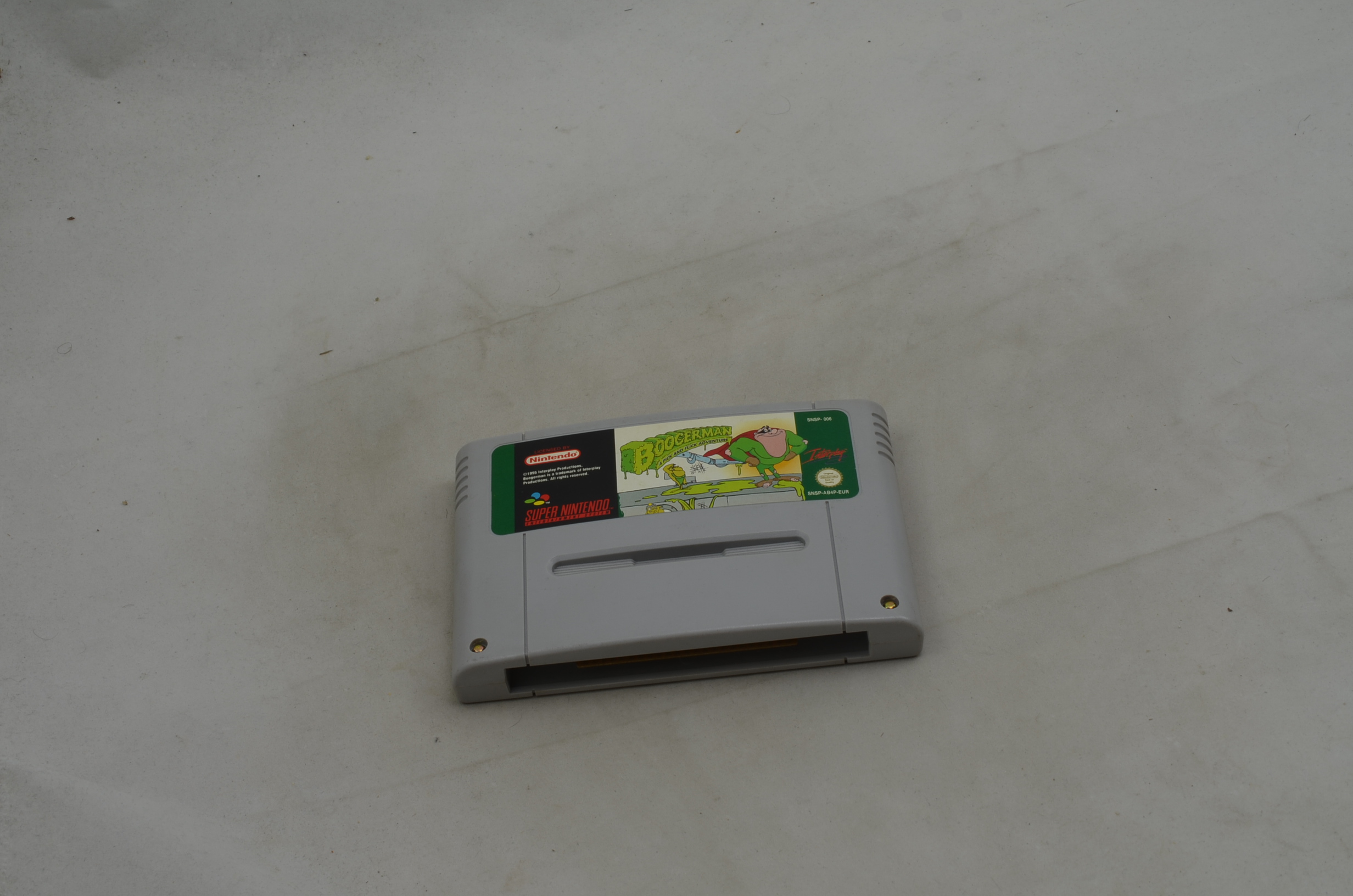Verkauft wird das Spiel Boogerman A Pick and Flick Adventure für den Super Nintendo. Bild nicht zwingend ein Originalbild. Modul ist in jedem Fall in spielbarem Zustand. Label grundsätzlich OK, höchstens kleine Ablösungen des Labels oder minimal fehlende Teile des Labels sind toleriert. Die meisten Module sind jedoch einwandfrei.