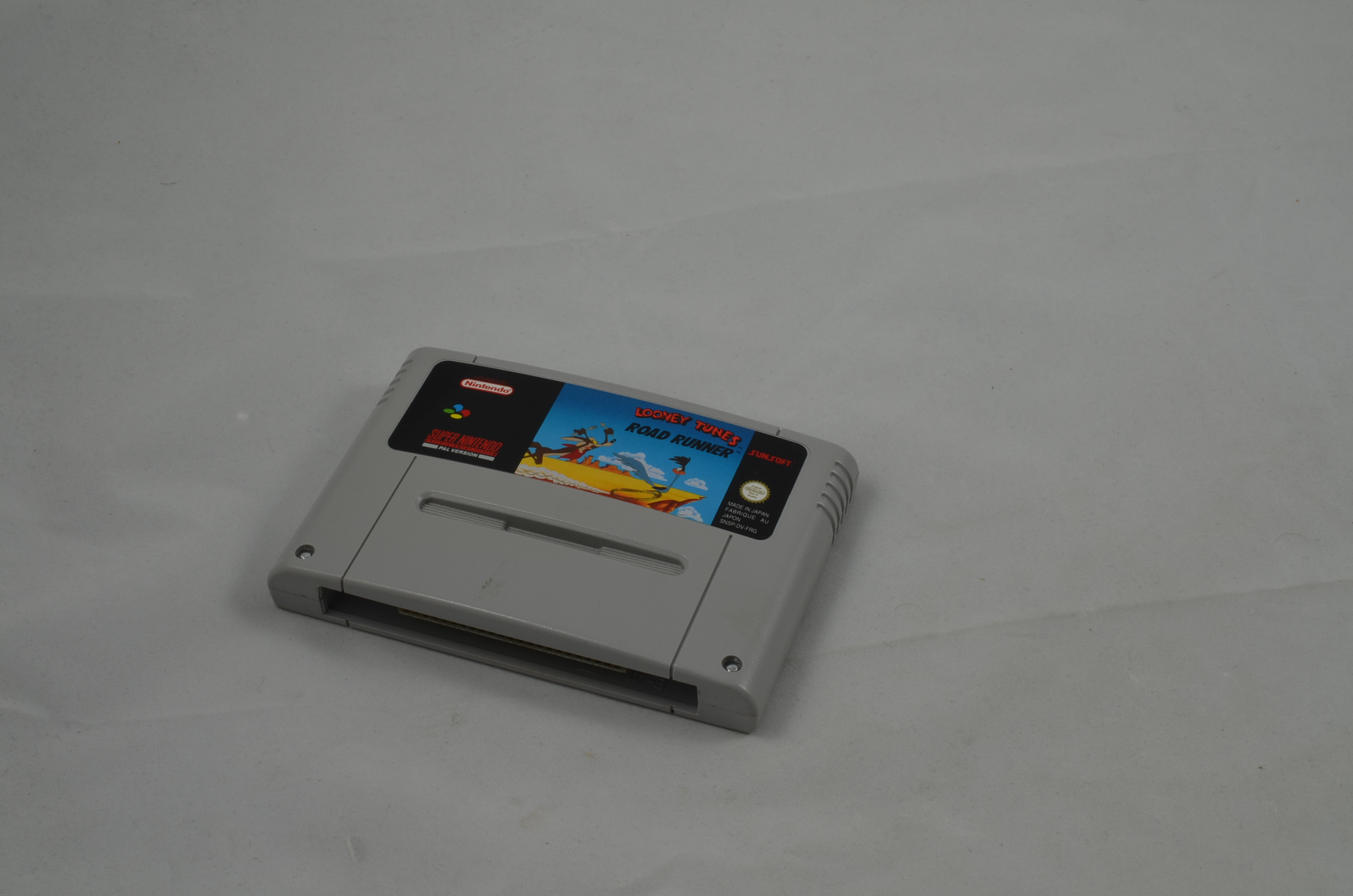 Verkauft wird das Spiel Looney Tunes Road Runner für den Super Nintendo. Bild nicht zwingend ein Originalbild. Modul ist in jedem Fall in spielbarem Zustand. Label grundsätzlich OK, höchstens kleine Ablösungen des Labels oder minimal fehlende Teile des Labels sind toleriert. Die meisten Module sind jedoch einwandfrei.