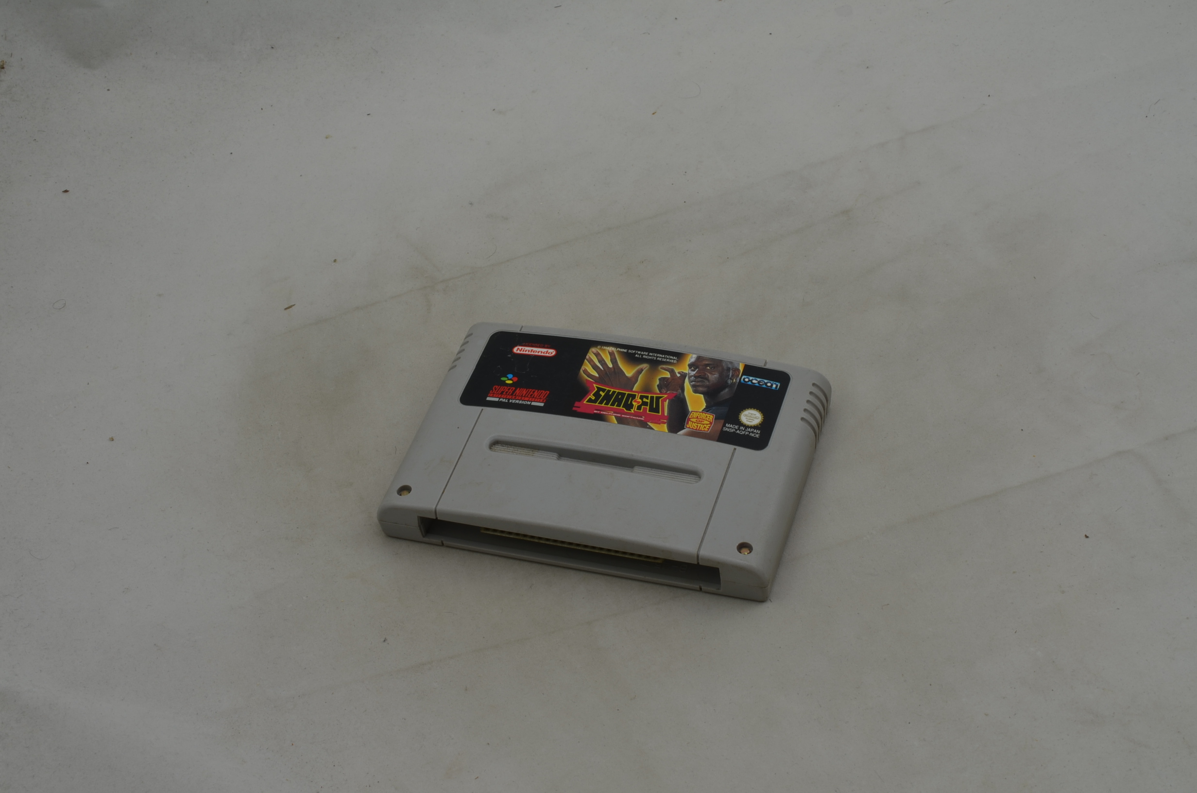 Verkauft wird das Spiel Shaq Fu für den Super Nintendo. Bild nicht zwingend ein Originalbild. Modul ist in jedem Fall in spielbarem Zustand. Label grundsätzlich OK, höchstens kleine Ablösungen des Labels oder minimal fehlende Teile des Labels sind toleriert. Die meisten Module sind jedoch einwandfrei.