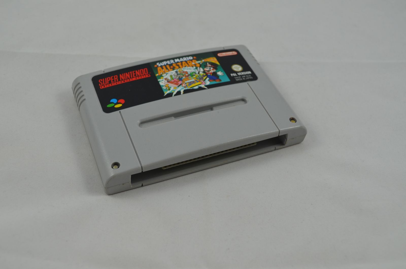 Verkauft wird das Spiel Super Mario All Stars für den Super Nintendo. Bild nicht zwingend ein Originalbild. Modul ist in jedem Fall in spielbarem Zustand. Label grundsätzlich OK, höchstens kleine Ablösungen des Labels oder minimal fehlende Teile des Labels sind toleriert. Die meisten Module sind jedoch einwandfrei.