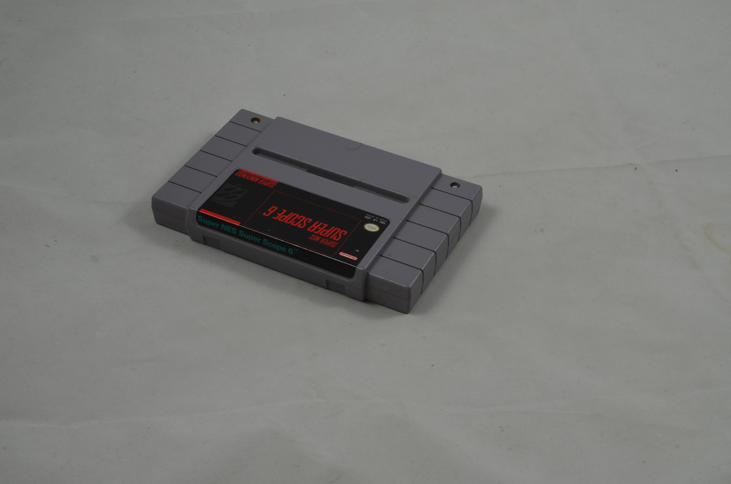 Verkauft wird das Spiel Super Scope 6. Achtung: Funktioniert nur auf amerikanischer Konsole. Bild nicht zwingend ein Originalbild. Label grundsätzlich OK, höchstens kleine Ablösungen des Labels oder minimal fehlende Teile des Labels sind toleriert. Die meisten Module sind jedoch einwandfrei.