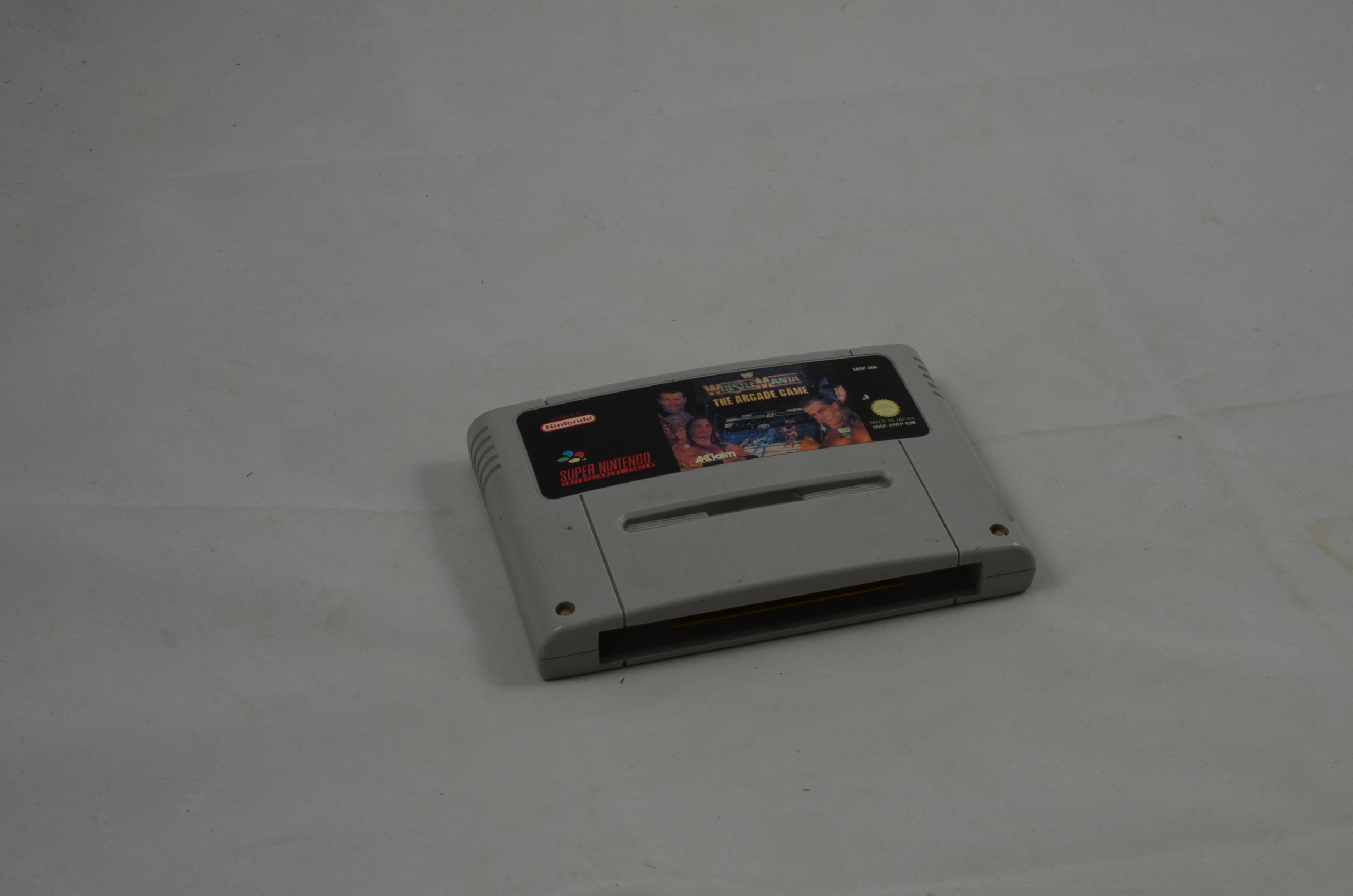 Verkauft wird das Spiel Wrestlemania the Arcade Game für den Super Nintendo. Bild nicht zwingend ein Originalbild. Modul ist in jedem Fall in spielbarem Zustand. Label grundsätzlich OK, höchstens kleine Ablösungen des Labels oder minimal fehlende Teile des Labels sind toleriert. Die meisten Module sind jedoch einwandfrei.