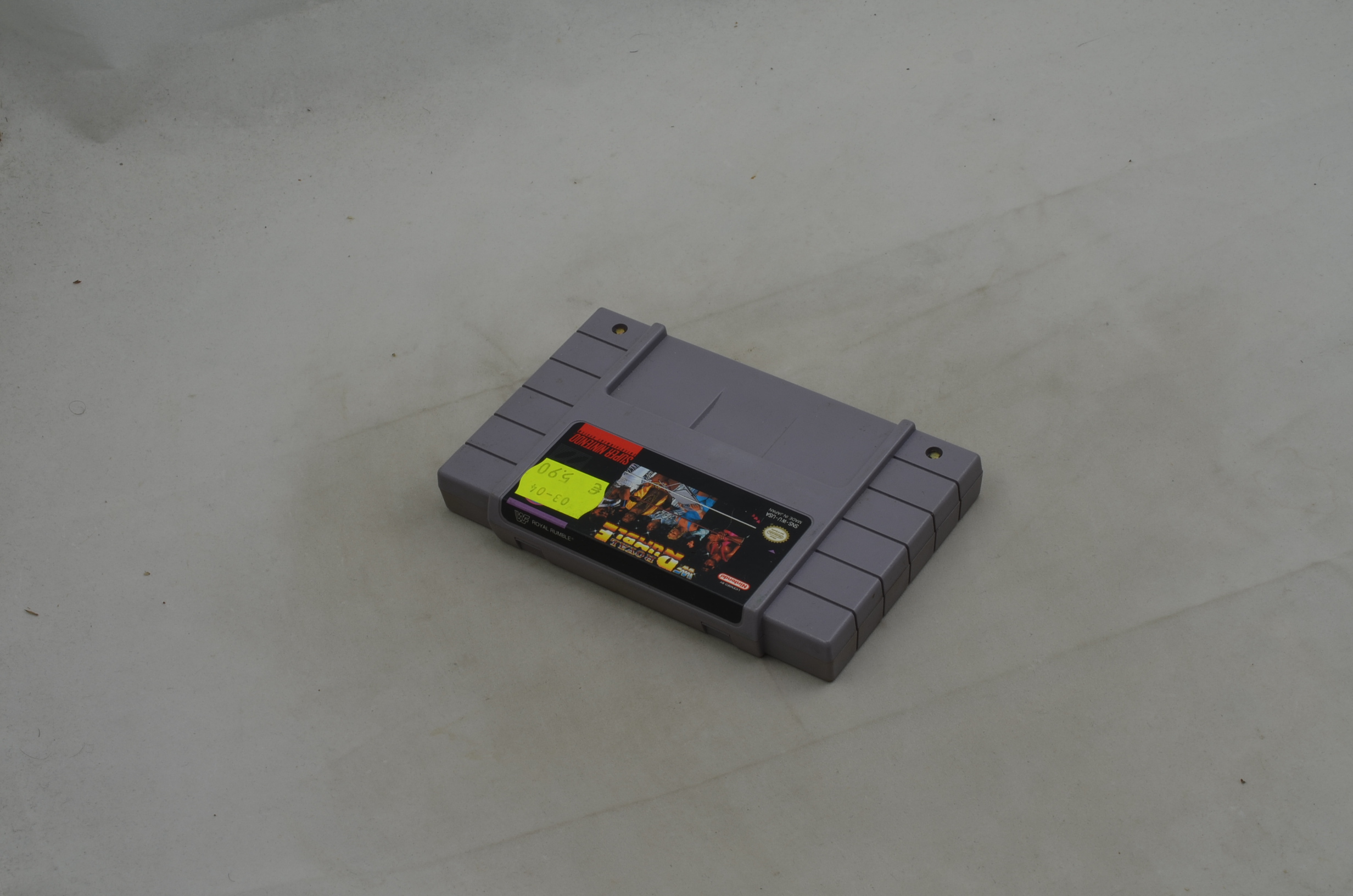 Verkauft wird das Spiel WWF Royal Rumble für den amerikanischen Super Nintendo. Bild nicht zwingend ein Originalbild. Modul ist in jedem Fall in spielbarem Zustand. Label grundsätzlich OK, höchstens kleine Ablösungen des Labels oder minimal fehlende Teile des Labels sind toleriert. Die meisten Module sind jedoch einwandfrei.