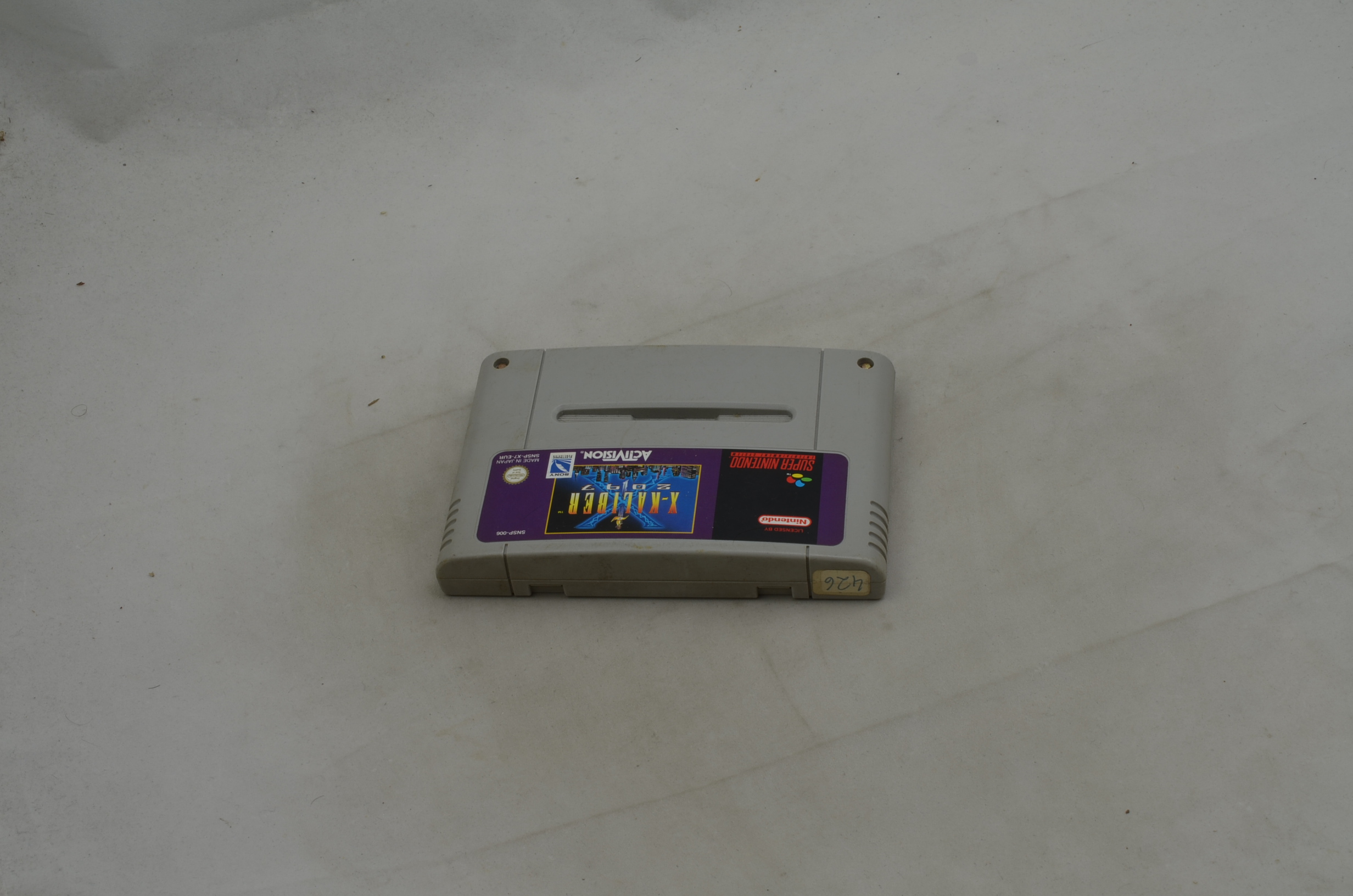 Verkauft wird das Spiel X-Kaliber 2097 für den Super Nintendo. Bild nicht zwingend ein Originalbild. Modul ist in jedem Fall in spielbarem Zustand. Label grundsätzlich OK, höchstens kleine Ablösungen des Labels oder minimal fehlende Teile des Labels sind toleriert. Die meisten Module sind jedoch einwandfrei.