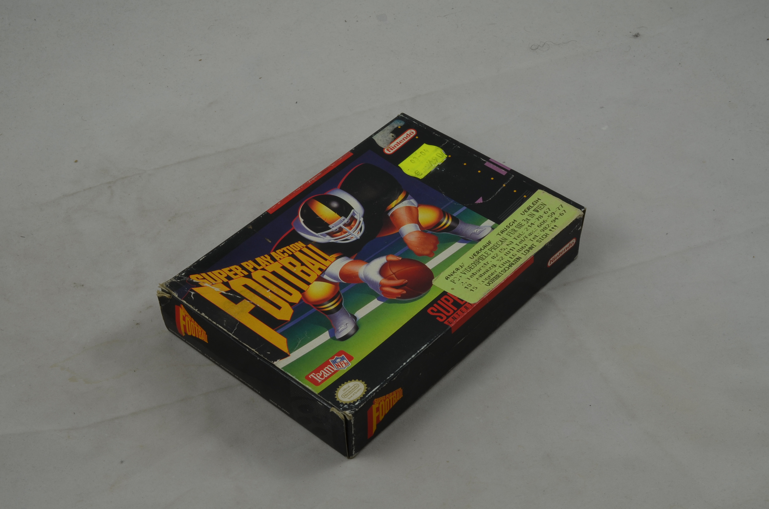 Verkauft wird das Spiel Super Play Action Football für den amerikanischen Super Nintendo mit der Originalverpackung. Die Anleitung ist leider nicht dabei. Originalbilder.