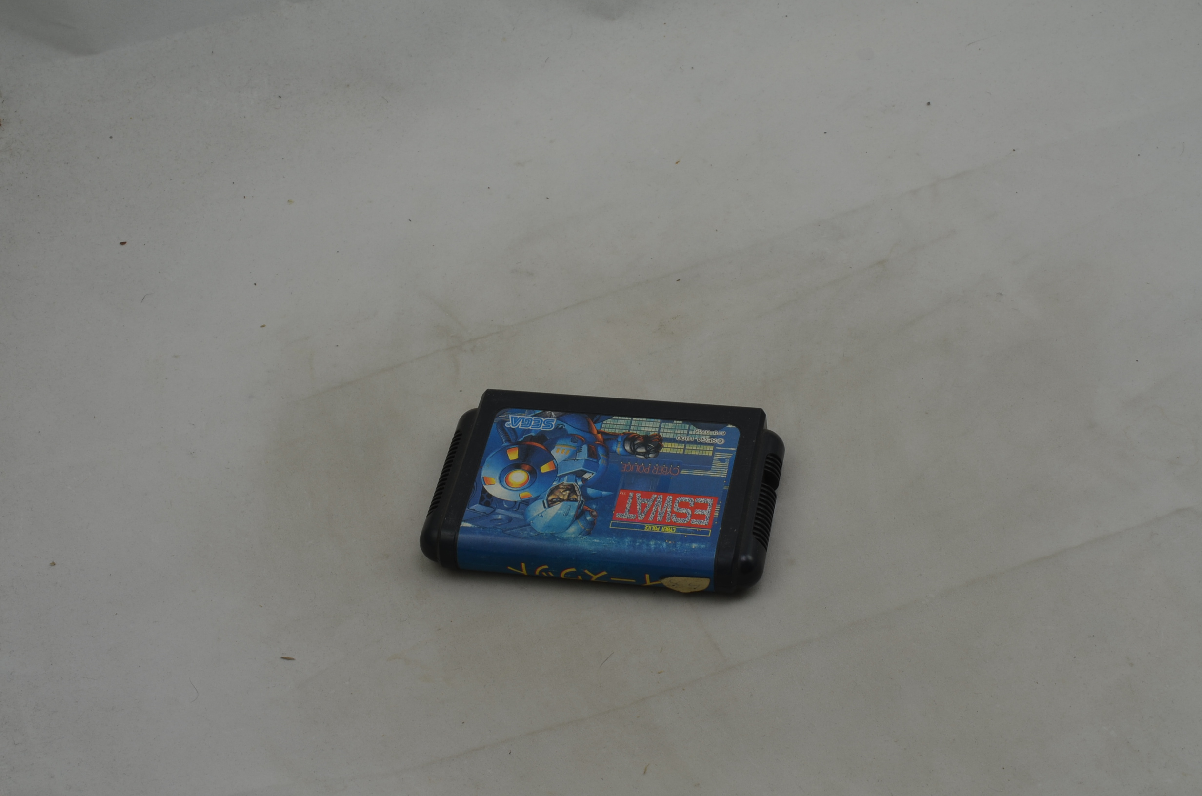Verkauft wird das Spiel ESWAT für den japanischen Sega Mega Drive. Bild nicht zwingend ein Originalbild. Modul ist in jedem Fall in spielbarem Zustand. Label grundsätzlich OK, höchstens kleine Ablösungen des Labels oder minimal fehlende Teile des Labels sind toleriert. Die meisten Module sind jedoch einwandfrei.