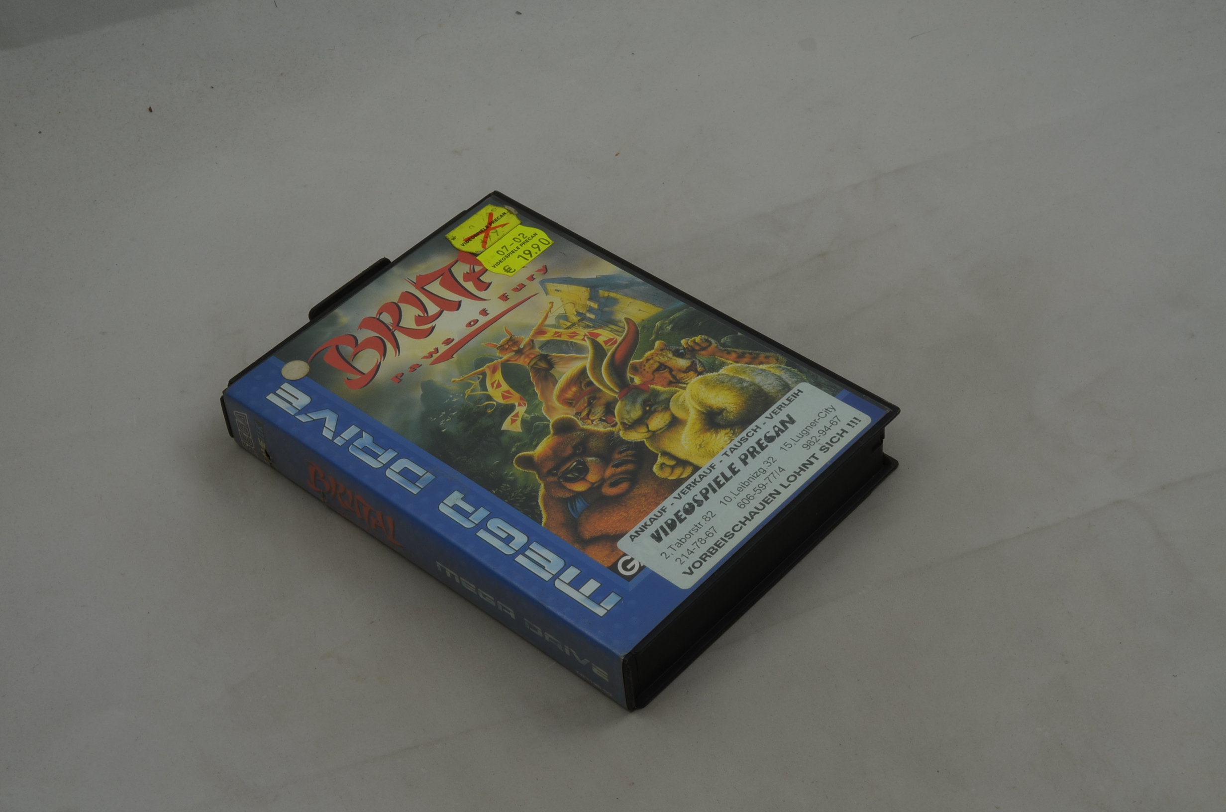 Verkauft wird 1x das Spiel Brutal Paws of Fury für den Sega Mega Drive in gutem Zustand. Originalbilder. Einmal gemäss Bild 1 - 3 und einmal gemäss Bild 4 - 6. Wenn Sie eine bestimmte Version wollen, fragen Sie bitte vor dem Kauf nach. Ohne Meldung wird dasjenige verschickt, was zuoberst im Regal ist.