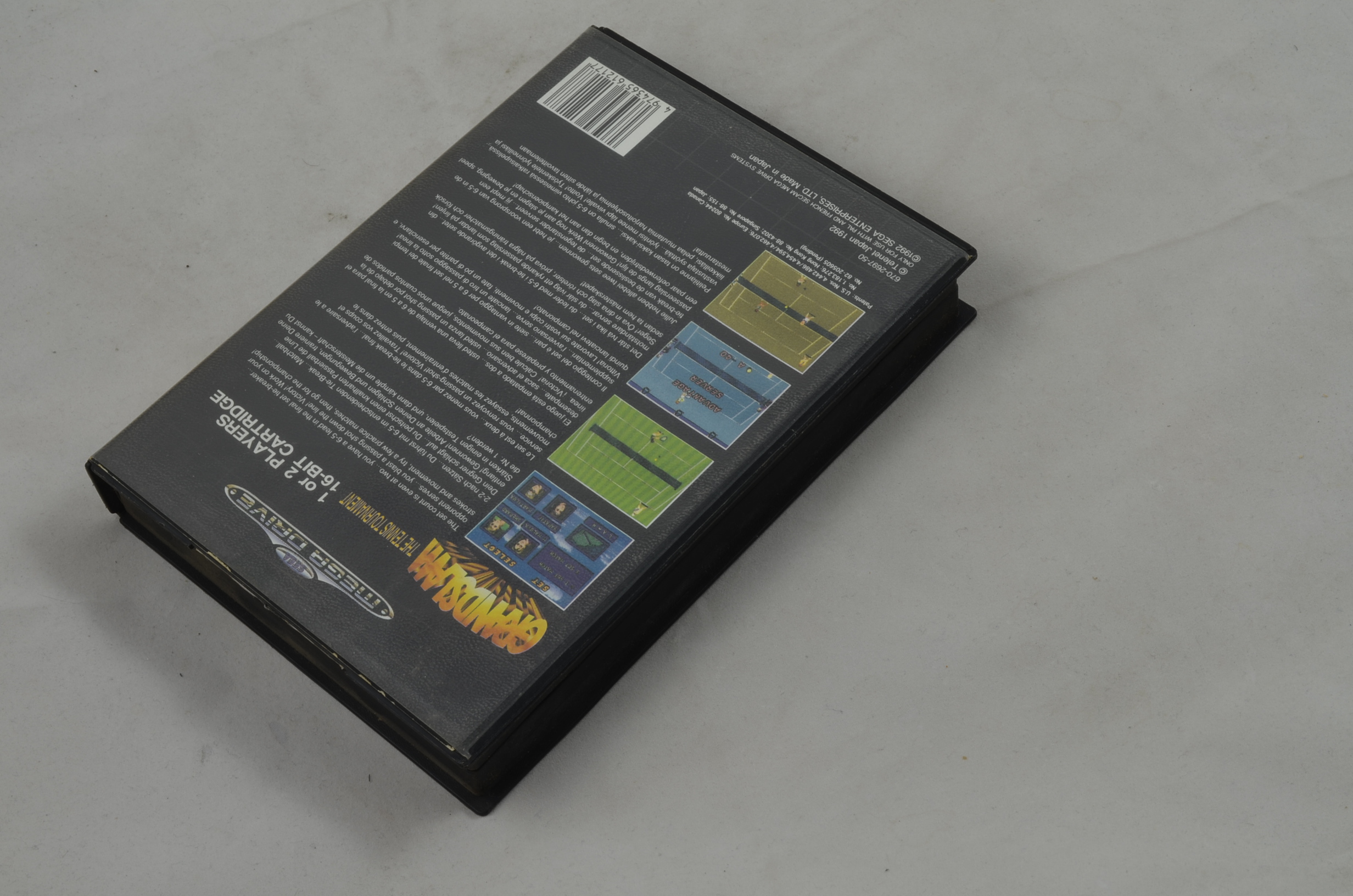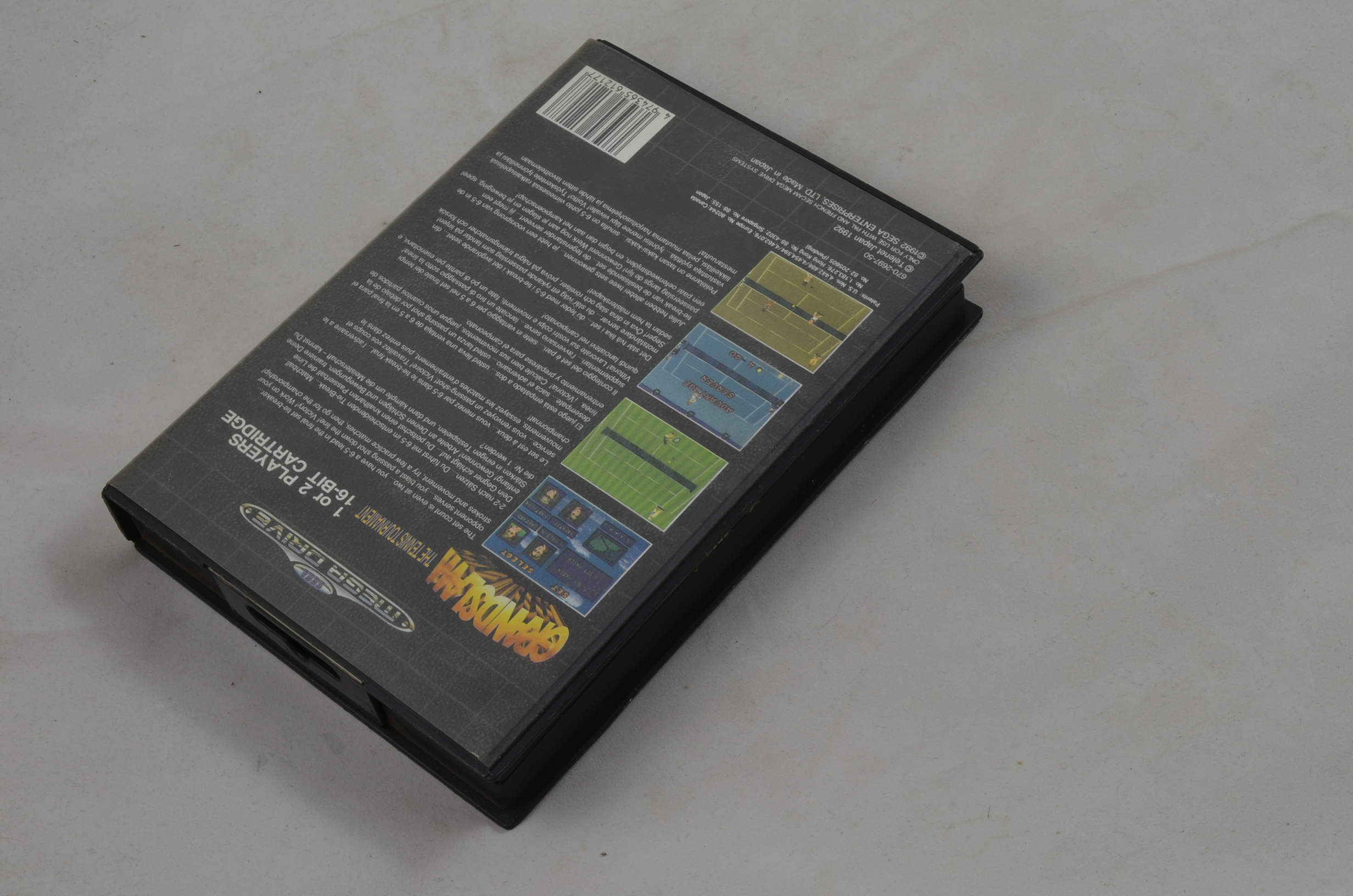 Verkauft wird das Spiel GrandSlam The Tennis Tournament für den Sega Mega Drive mit der Originalverpackung. Die Anleitung ist leider nicht dabei. Originalbilder. Einmal gemäss Bild 1 - 3 und einmal gemäss Bild 4 - 6.