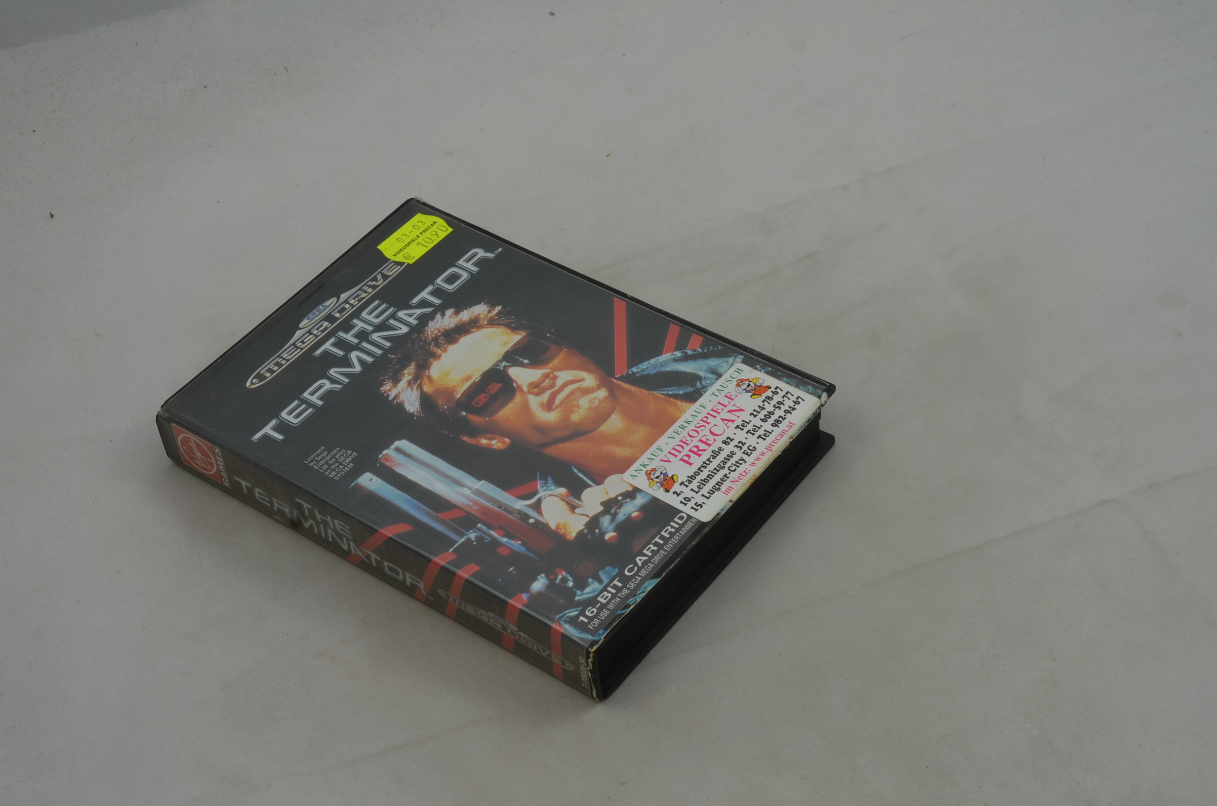 Verkauft wird 1x das Spiel The Terminator für den Sega Mega Drive mit der Originalverpackung. Die Anleitung ist leider nicht dabei. Originalbilder. Einmal gemäss Bild 1 - 3 und einmal gemäss Bild 4 - 6. Wenn Sie eine bestimmte Version wollen, fragen Sie bitte vor dem Kauf nach. Ohne Meldung wird dasjenige verschickt, was zuoberst im Regal ist.