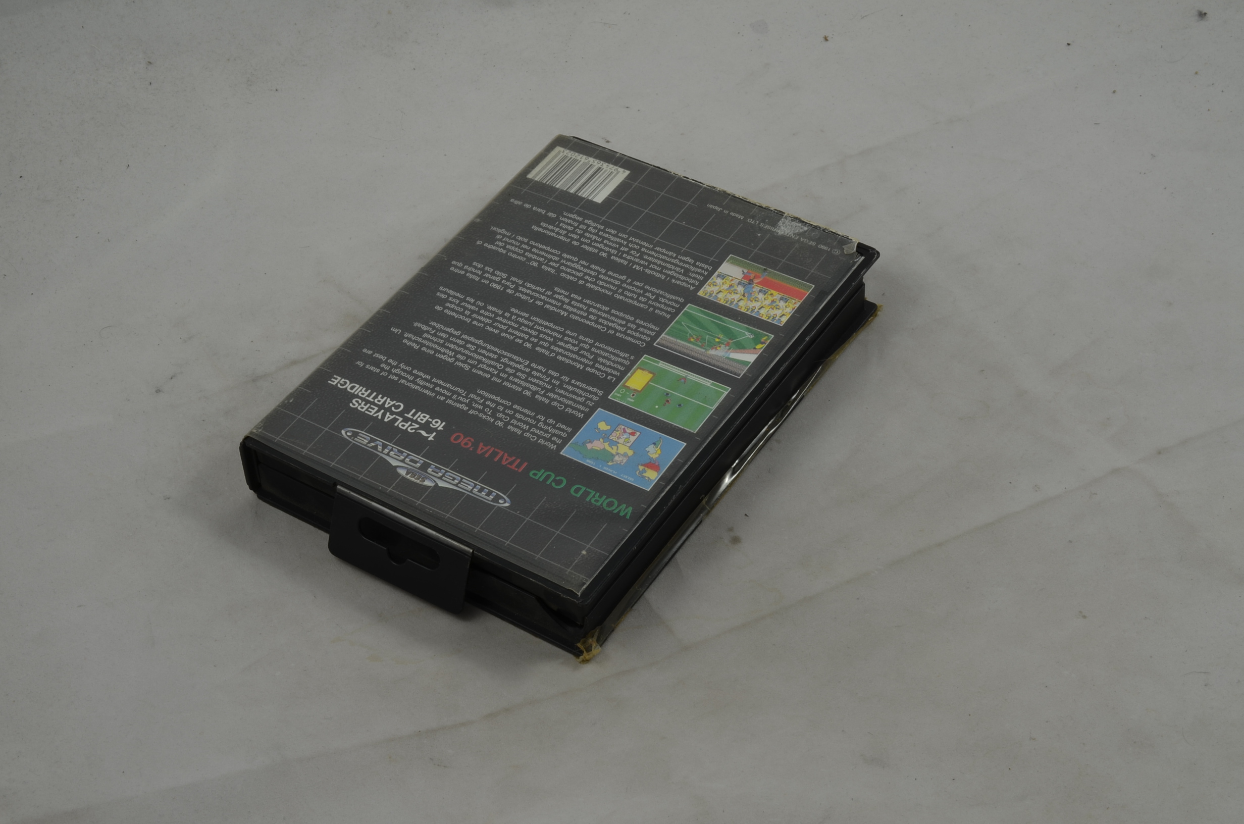 Verkauft wird das Spiel World Cup Italia '90 für den Sega Mega Drive mit der Originalverpackung. Die Anleitung ist leider nicht dabei. Originalbilder.